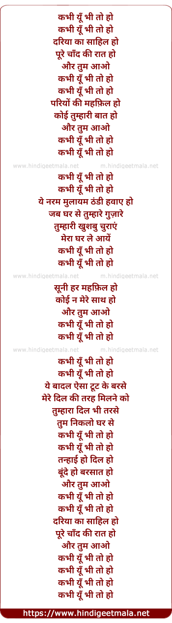 Lyrics of Kabhi Yu Bhi To Ho - कभी यु भी तो हो