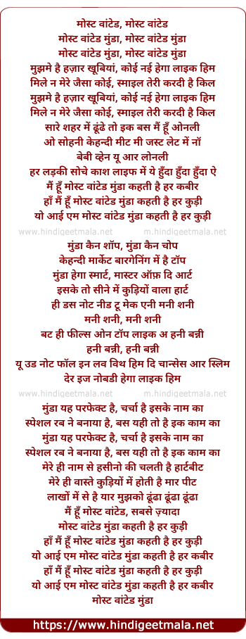Lyrics of Kabir Most Wanted Mundaa - कबीर मोस्ट वांटेड मुंडा