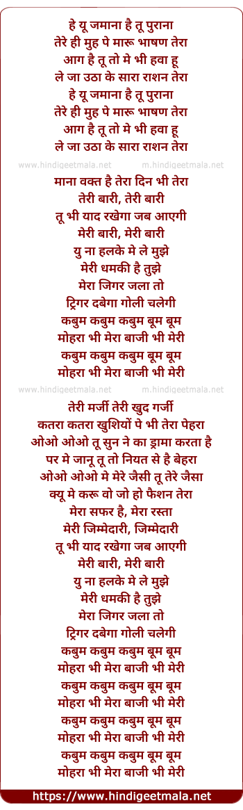 Lyrics of Kaboom, Mohra Bhi Mera Bazi Bhi Merii - कबुम, मोहरा भी मेरा बाजी भी मेरी