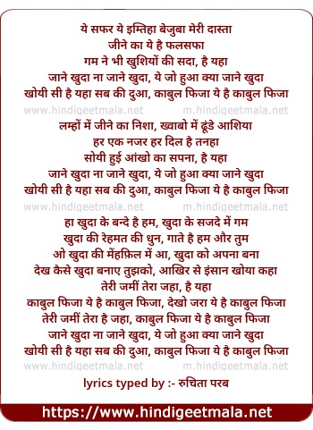 khoyi si hai yaha sab ki dua, kabul fiza ye hai kabul fiza