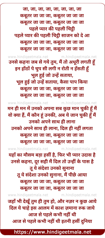 Lyrics of Kabutar Jaa Jaa Jaa - कबूतर जा जा जा