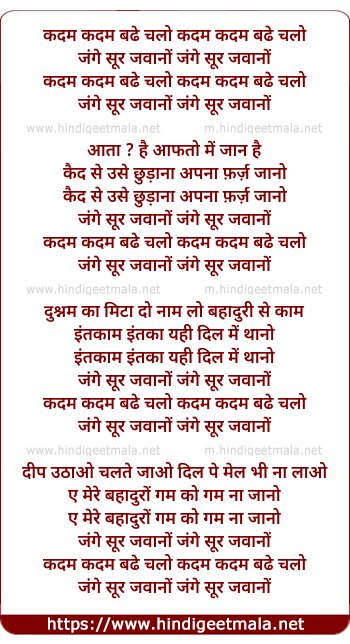 Lyrics of Kadam Kadam Badhe Chalo - कदम कदम बढे चलो
