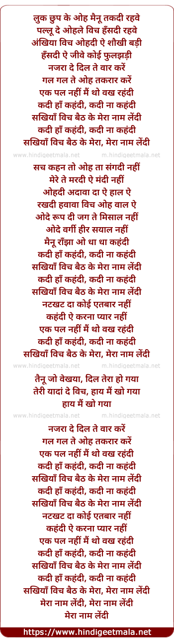 Lyrics of Kadee Han Kehndee Kadee Na Kehndee - लुक छुप के ओह मैनू तकदी रहवे