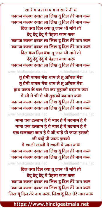 Lyrics of Kagaz Kalam Davat La Likh Du - कागज कलम दवात ला लिख दूँ