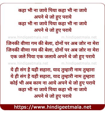 Lyrics of Kaha Bhi Na Jaye Piya, Kaha Bhi Na Jaye - कहा भी ना जाये पिया कहा भी ना जाये