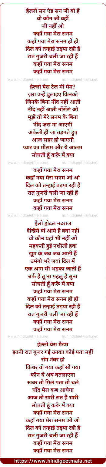 Lyrics of Kaha Gaya Mera Sanam - कहाँ गया मेरा सनम