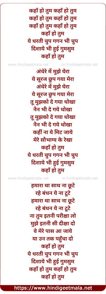 Lyrics of Kaha Ho Tum - कहाँ हो तुम
