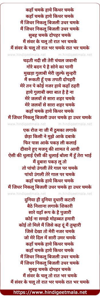 Lyrics of Kahan Chamke Kidhar Chamke - कहाँ चमके किधर चमके