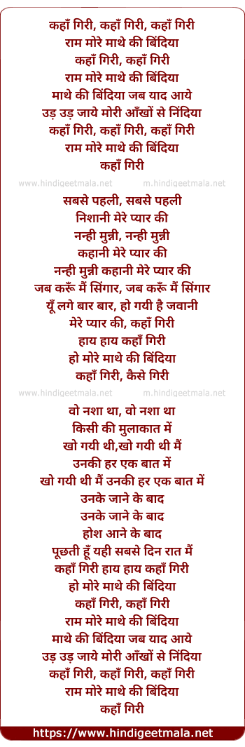 Lyrics of Kahan Giri Ram More - कहाँ गिरी राम मोरे