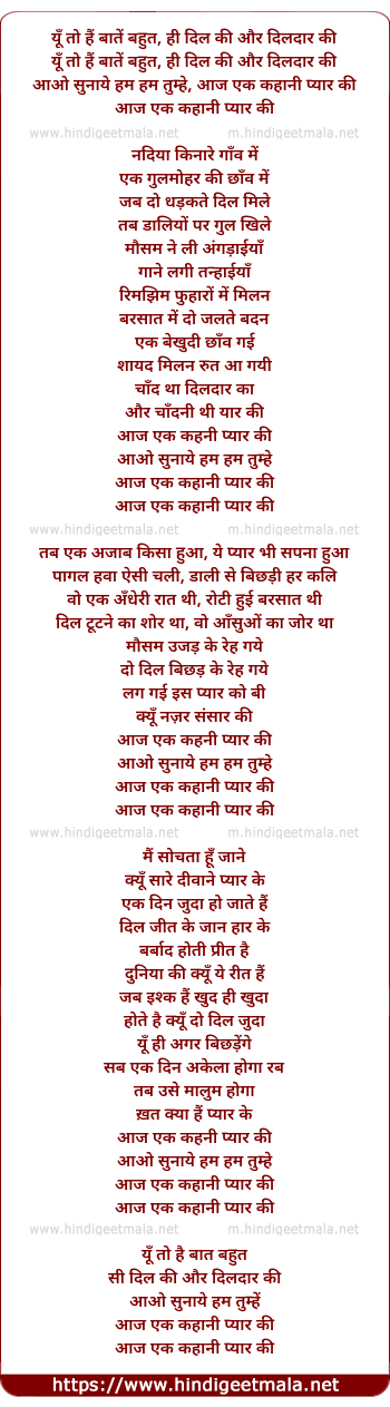 aao sunayen hum tumhe, aaj ek kahani pyaar ki