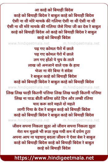Lyrics of Kahe Ko Byahi Bidesh Re Baabul - काहे को बियाही बिदेस रे बाबुल