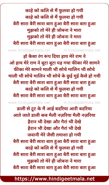 Lyrics of Kahe Ko Kali Se Main Phulwa Ho Gayi - काहे को कलि से मैं फुलवा हो गयी