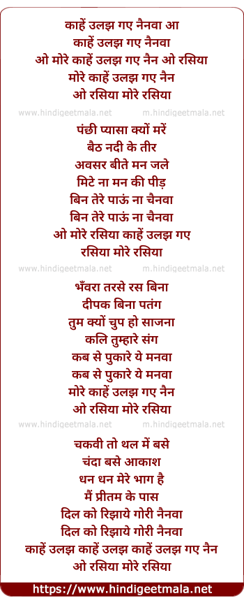 Lyrics of Kahe Ulajh Gaye Nayanwa - काहें उलझ गए नैनवा