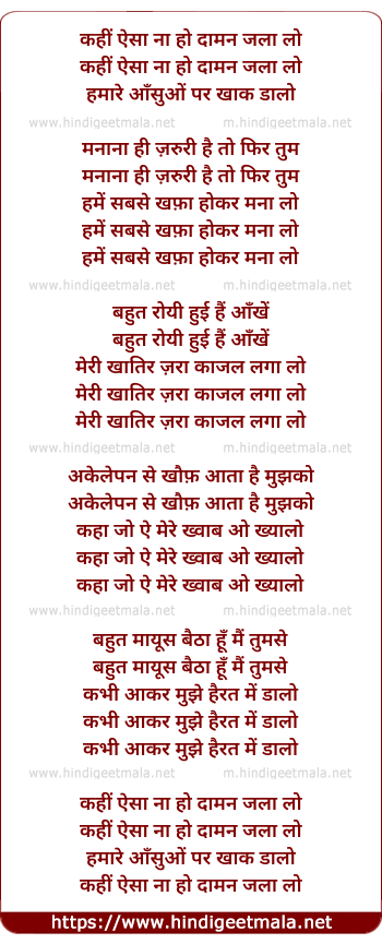 Lyrics of Kahi Aisa Na Ho Daman Jala Lo - कहीं ऐसा ना हो दामन जला लो