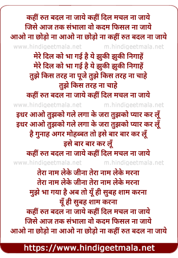 Lyrics of Kahi Rut Badal Na Jaye Kahi Dil Machal Na Jaye - कहीं रुत बदल ना जाये कहीं दिल मचल ना जाये
