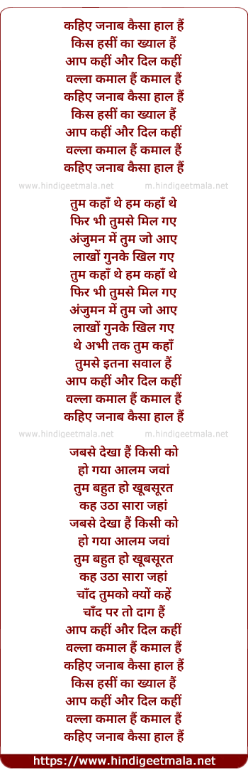 Lyrics of Kahiye Janab Kaisa Haal Hai - कहिए जनाब कैसा हाल हैं