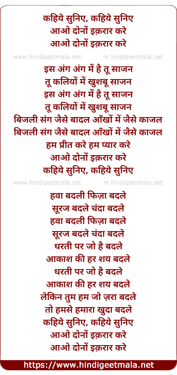 Lyrics of Kahiye Suniye Aao Dono Ikrar Kare - कहिये सुनिए आओ दोनों इक़रार करे