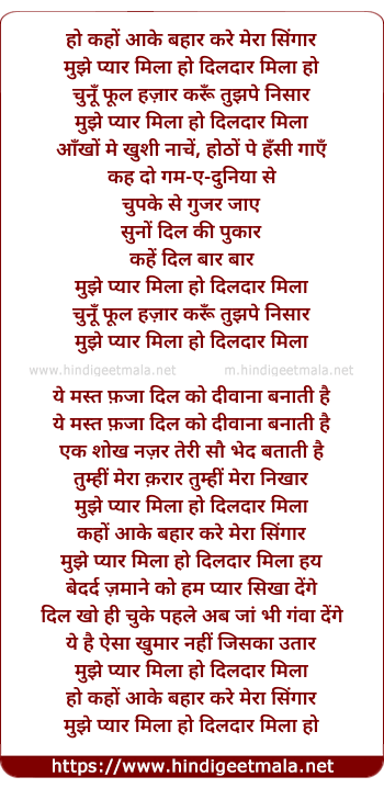 Lyrics of Ho Kaho Aake Bahaar Kare Mera Singaar - हो कहों आके बहार करे मेरा सिंगार