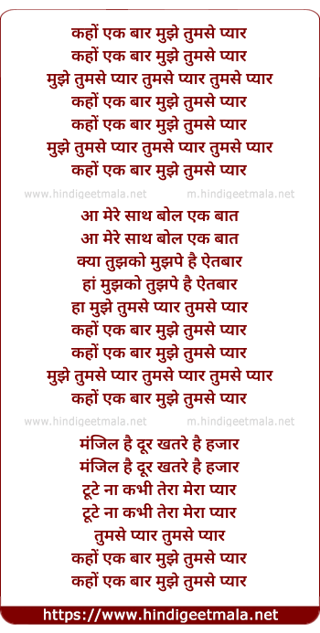Lyrics of Kaho Ek Baar Mujhe Tumse Pyar - कहों एक बार मुझे तुमसे प्यार