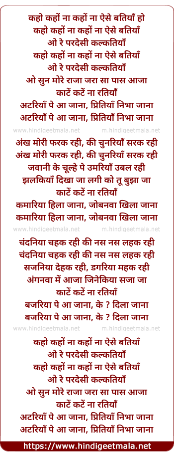 Lyrics of Kaho Kaho Na Kaho Na Aise Batiya Ho - कहो कहों ना कहों ना ऐसे बतियाँ हो