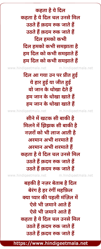 Lyrics of Kahta Hai Yeh Dil Chal Unase Mil - कहता है ये दिल चल उनसे मिल