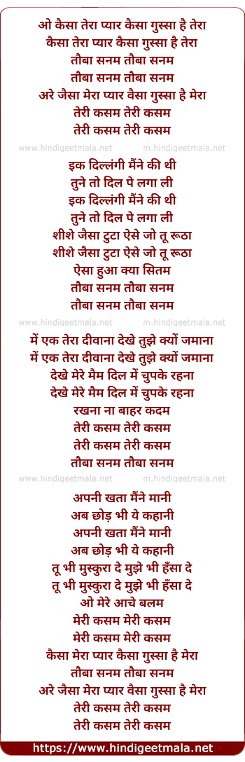 hai tera.toba sanam.jaisa mera pyar waisa ghussa hai mera.teri