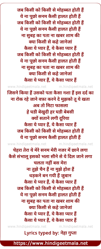 Lyrics of Kaisa Yeh Pyar Hai - कैसा ये प्यार हैं
