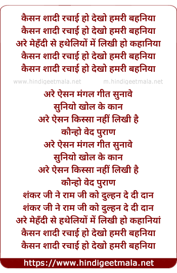 Lyrics of Kaisan Saadi Rachai Hain Ho Dekho Hamri Bahniya - कैसन शादी रचाई हो देखो हमरी बहनिया