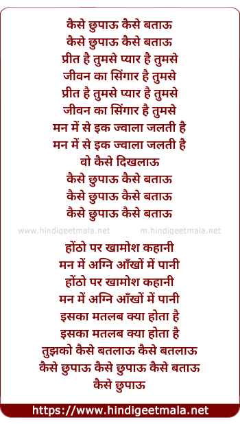 Lyrics of Kaise Chipau Kaise Batau - कैसे छुपाऊ कैसे बताऊ