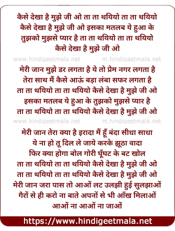 Lyrics of Kaise Dekha Hai Mujhe Ji O Tha Tha Thiyo - कैसे देखा है मुझे जी ओ ता ता थयियो
