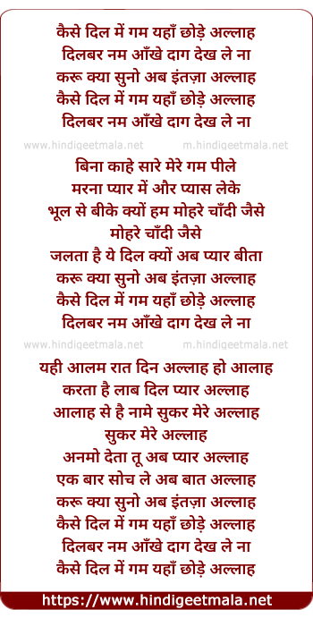 Lyrics of Kaise Dil Me Gam Yaha Chhode Allha - कैसे दिल में गम यहाँ छोड़े अल्लाह
