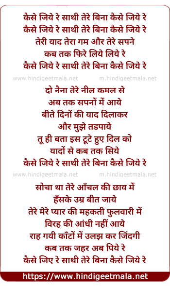 Lyrics of Kaise Jiye Re Saathi Tere Bina Kaise - कैसे जिए रे साथी तेरे बिना कैसे