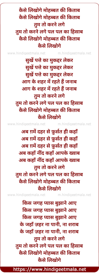 Lyrics of Kaise Likhoge Mohabbat Kee Kitaab - कैसे लिखोगे मोहब्बत की किताब