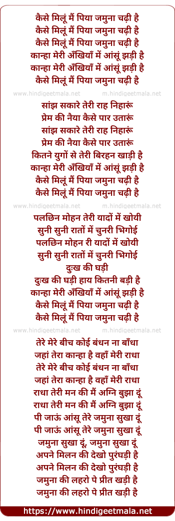 Lyrics of Kaise Milu Main Piya - कैसे मिलूं मैं पिया