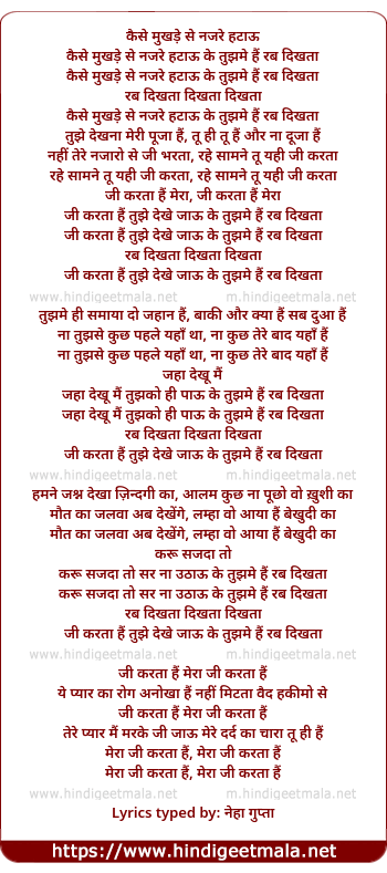 kaise mukhde se nazre hatau ke tujhme hai rab dikhta