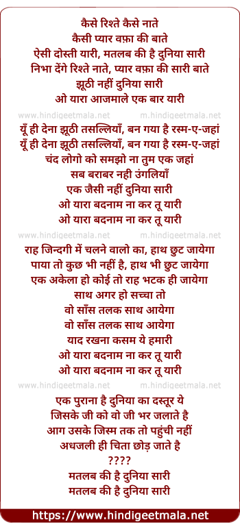 Poetic Translation - Lyrics of Kaise Rishte Kaise Nate - कैसे रिश्ते कैसे नाते