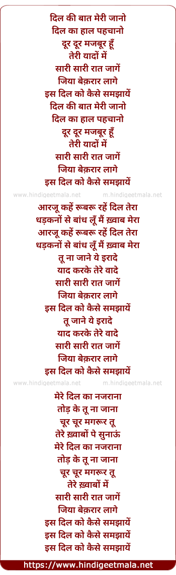 Lyrics of Kaise Samjhaye - दिल की बात मेरी जानो