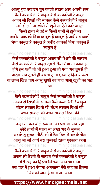 Lyrics of Kaisi Katkareji Re Babul - कैसी कत्कारेजी रे बाबुल