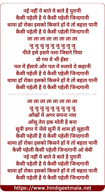 Lyrics of Kaisi Paheli Jindgani - कैसी पहेली जिंदगानी