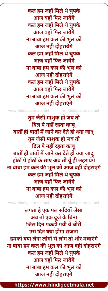 Lyrics of Kal Hum Jaha Mile The - कल हम जहाँ मिले थे