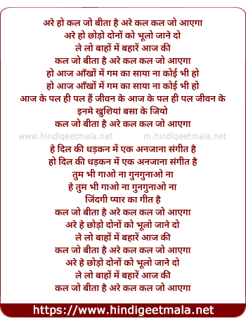 Lyrics of Kal Kal Jo Beeta Hain - कल कल जो बीता है