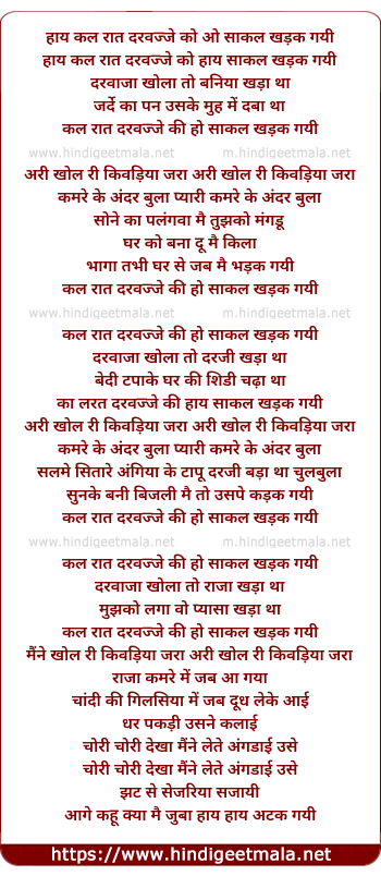Lyrics of Kal Raat Darvajje Ki - कल रात दरवज्जे की