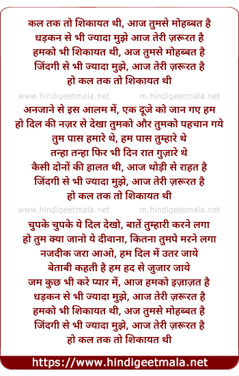 Lyrics of Kal Tak Toh Shikaayat Thee - कल तक तो शिकायत थी