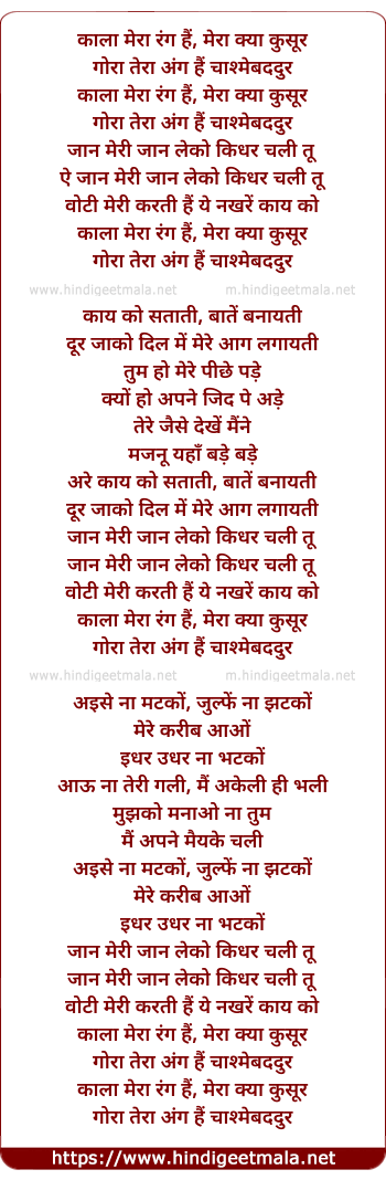 Lyrics of Kala Mera Rang Hai - काला मेरा रंग हैं, मेरा क्या कुसूर