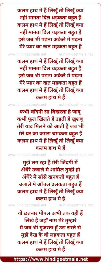 Lyrics of Kalam Hath Me Hai Likhu To Likhu Kya - कलम हाथ मे हैं लिखूँ तो लिखूँ क्या