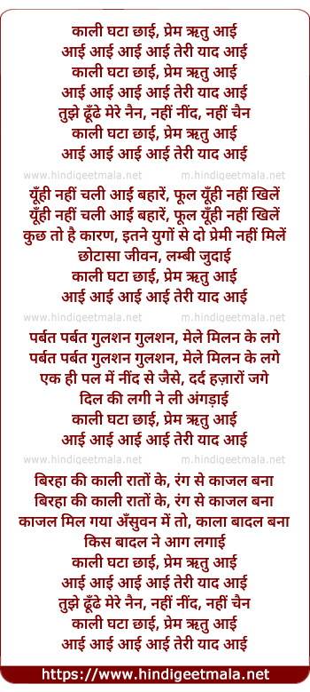 Lyrics of Kalee Ghata Chhayee, Prem Ruth Aayee (Male) - काली घटा छाई, प्रेम ऋतु आई