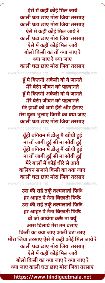 kya jaaye kaali ghata chhaaye mora jiya tarsaaye