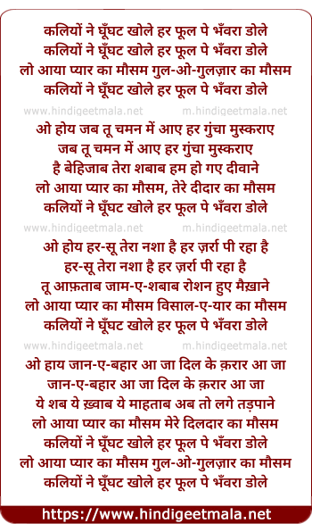 Lyrics of Kaliyo Ne Ghunghat Khole - कलियों ने घूँघट खोले