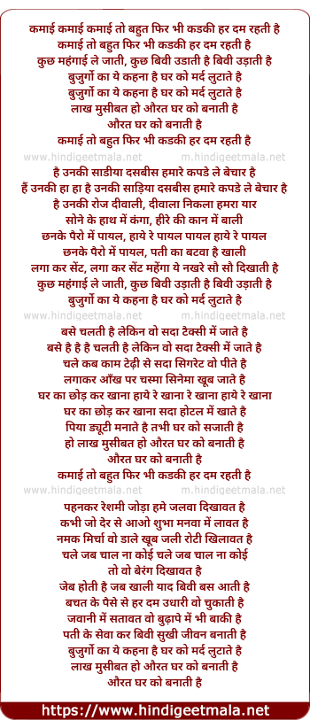 Lyrics of Kamai To Bahut Phir Bhi - कमाई तो बहुत फिर भी