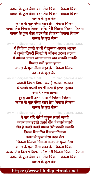 Lyrics of Kamal Ke Phool Jaisa Badan Tera Chikna - कमल के फूल जैसा बदन तेरा चिकना